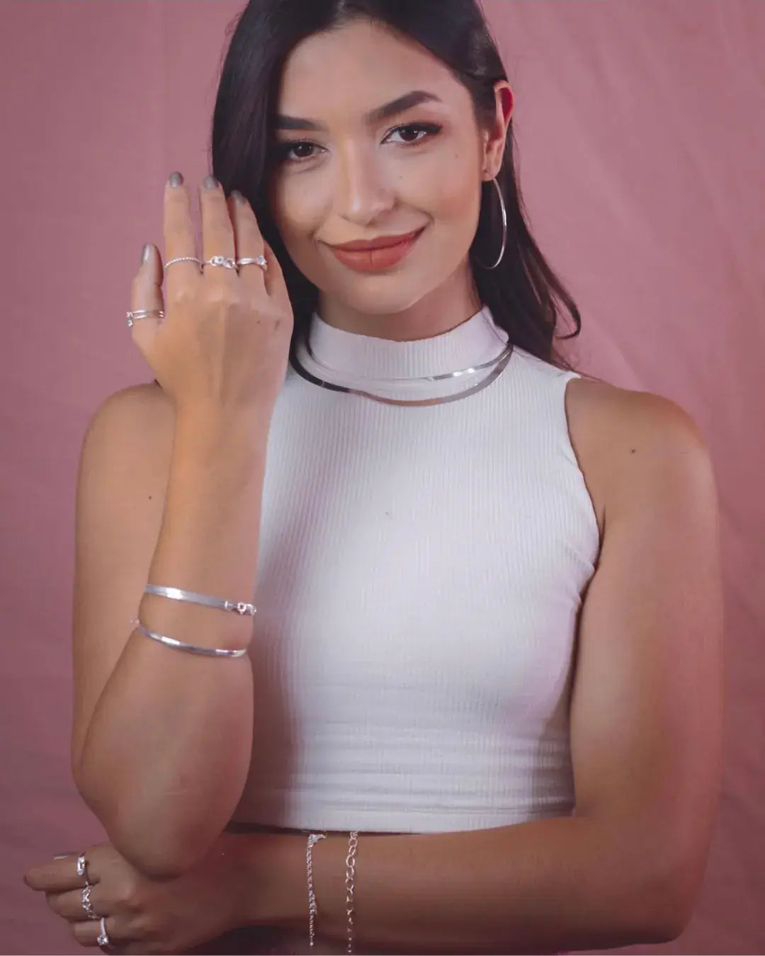 Acreditamos que a prata é um material nobre e versátil, que pode ser usado em diferentes ocasiões. Por isso, oferecemos uma variedade de jóias, incluindo brincos, anéis, colares, pulseiras e pingentes.